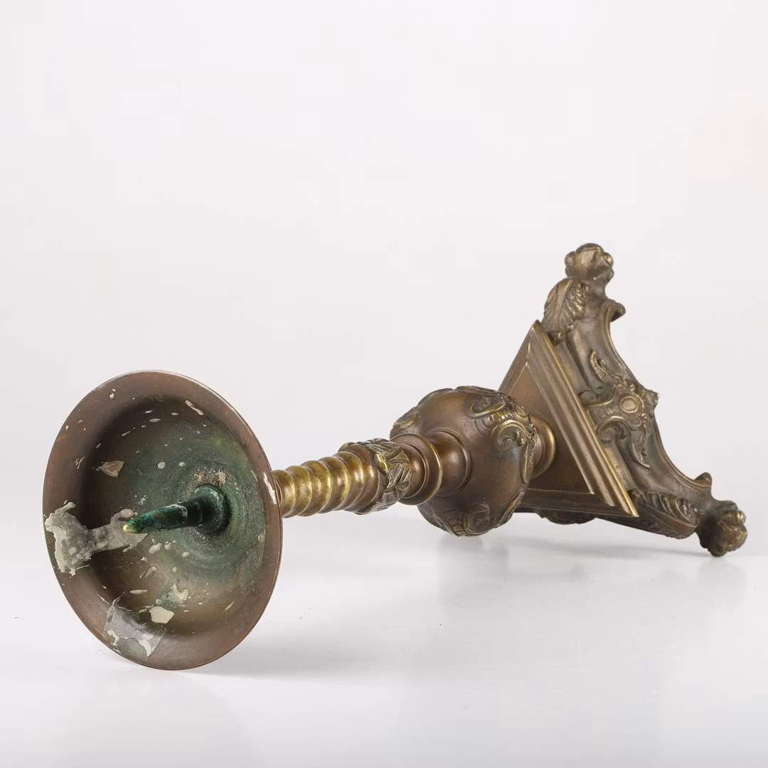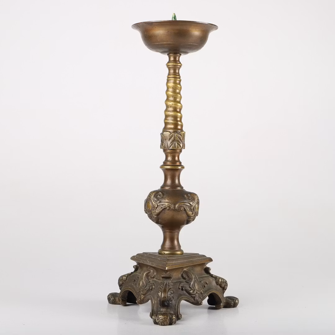 Stor, tung och riktigt rejäl kyrkoljusstake i brons.Höjd: 43cmAvhämtas i södra Ängelholm eller hemlevereras, tag kontakt med [email protected] för fraktkostnad.