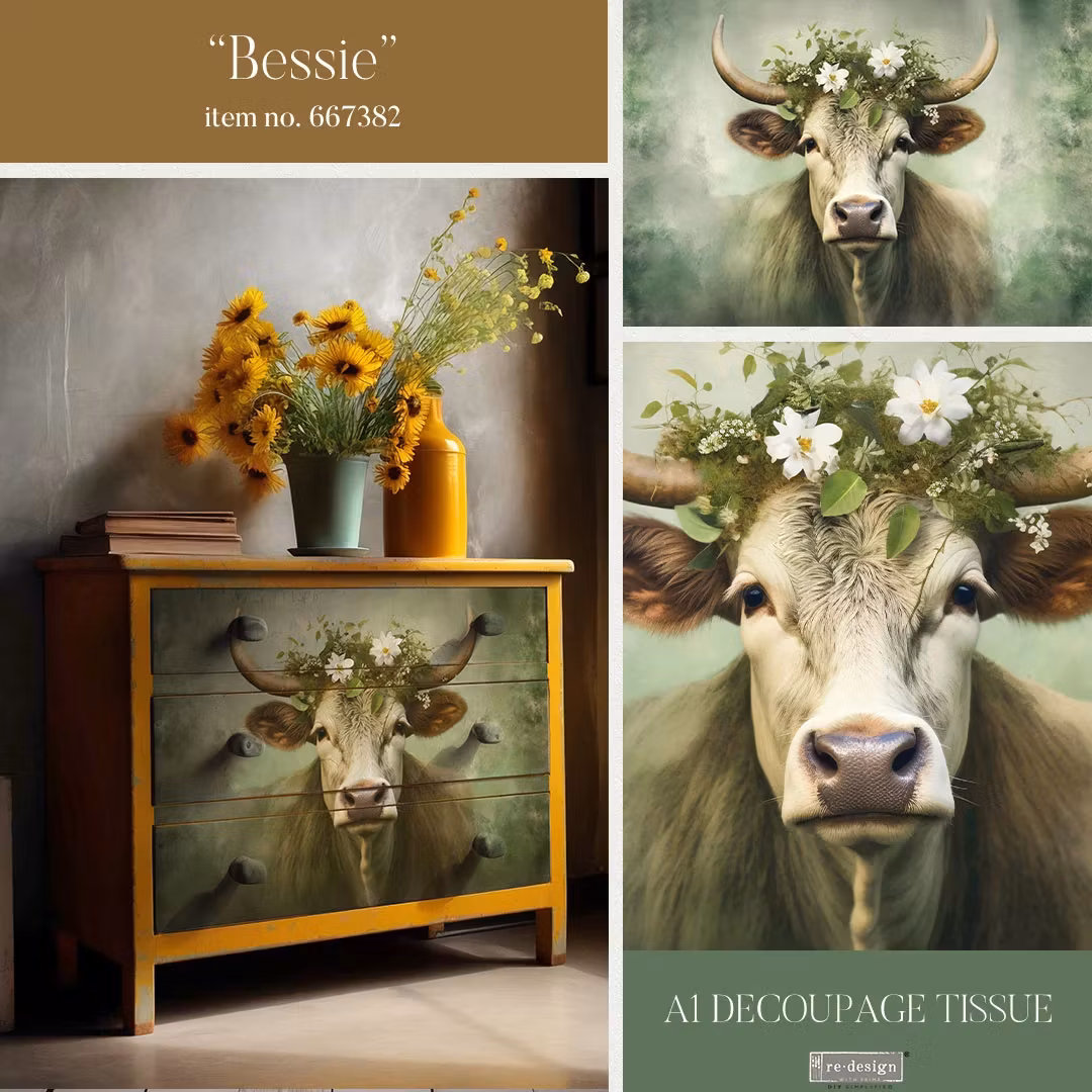 Decoupagepapper - Steampunk Parrot, grön (75x50cm)