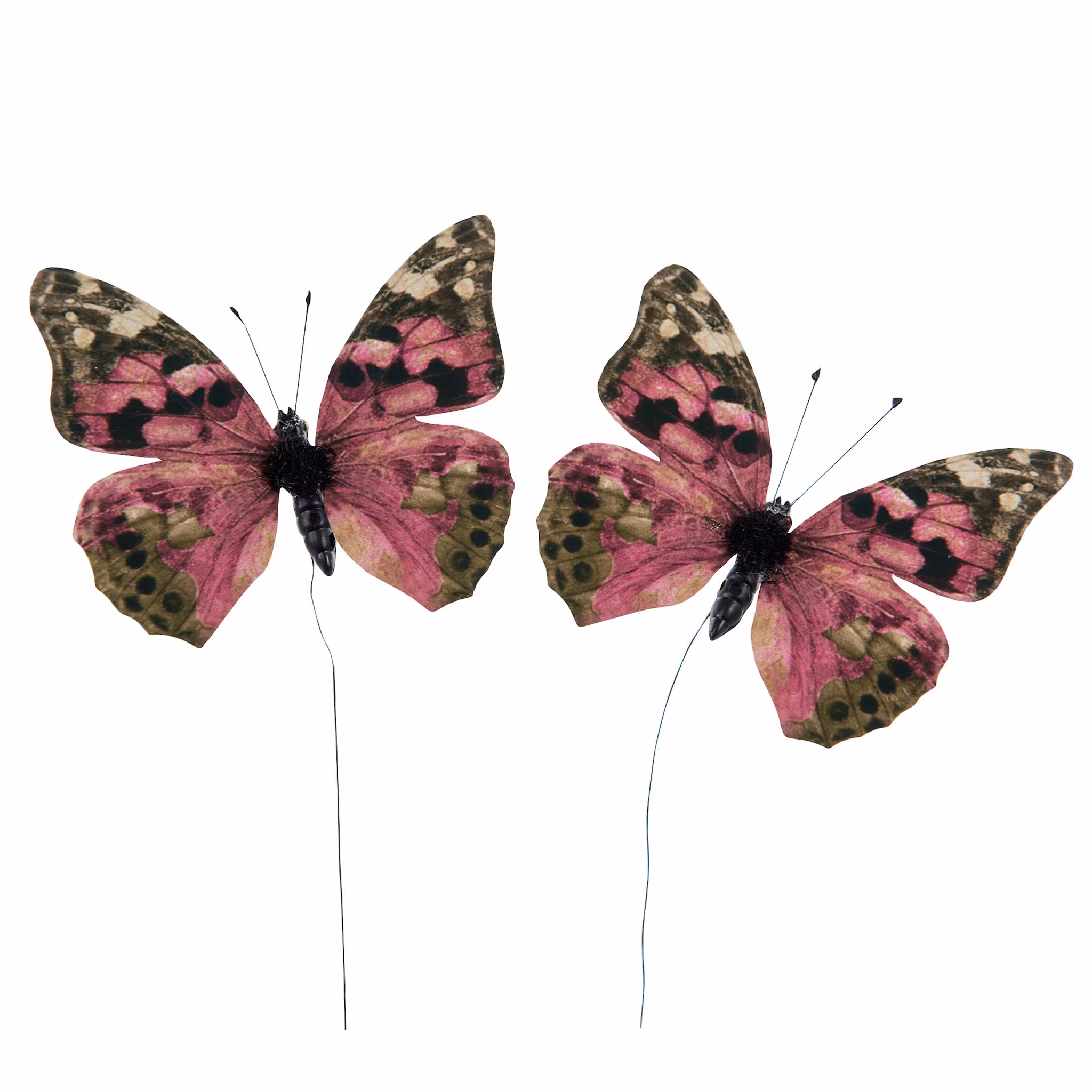Dekorera krukväxter, kransar mm. med dessa fina fjärilar på pinne. Pinne ~8 cm. Vattentålig. Tillverkade i plast.Mått: 8cm