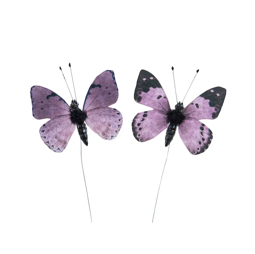 Dekorera krukväxter, kransar mm. med dessa fina fjärilar på pinne. Pinne ~8 cm. Vattentålig. Tillverkade i plast.Mått: 8cm