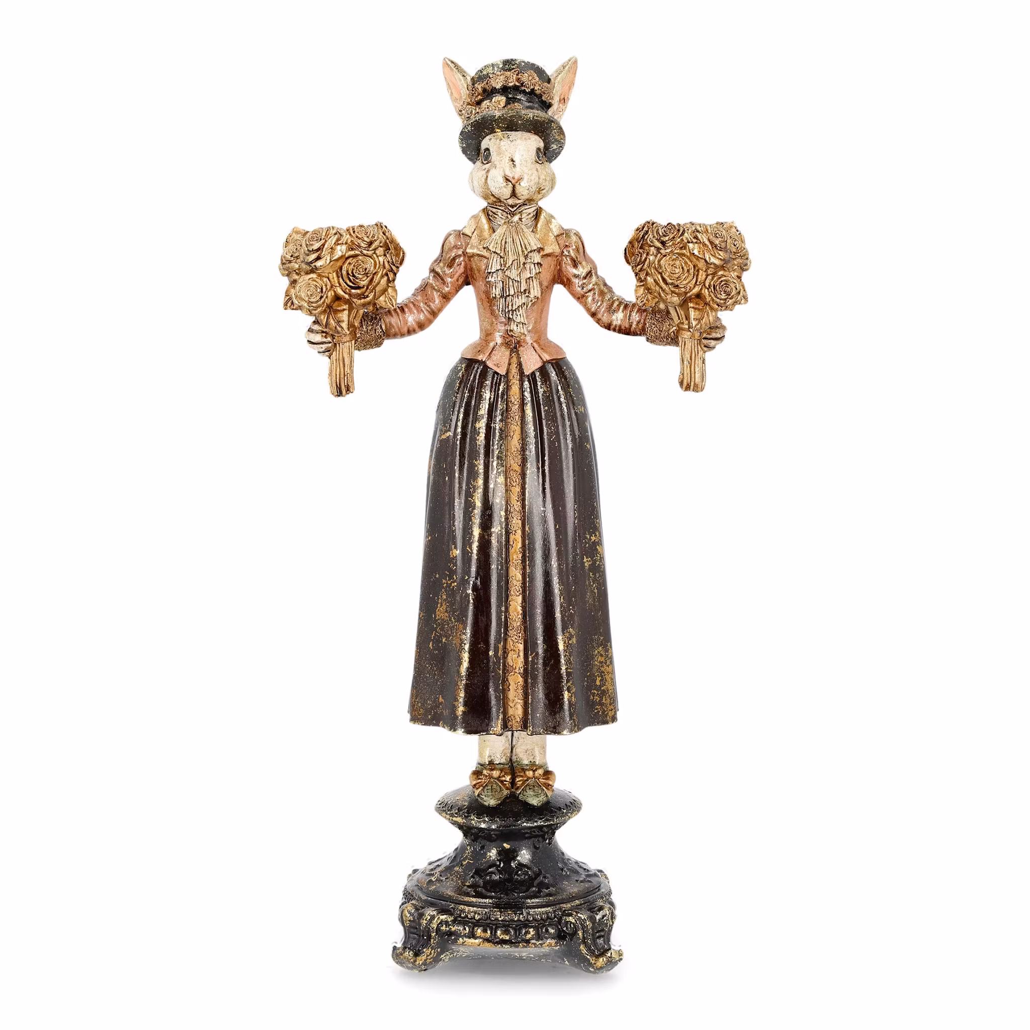 OBS!Leverans tidigast i mitten på november!Kanin i klänning som håller två buketter i händerna där ljushållarna finns.Lika fin året om.