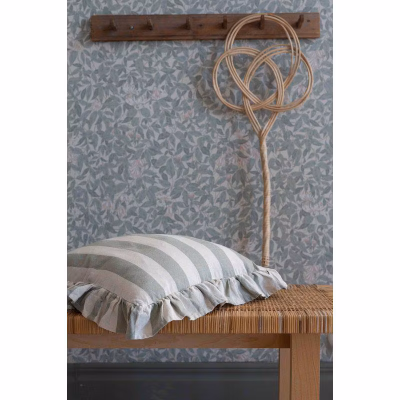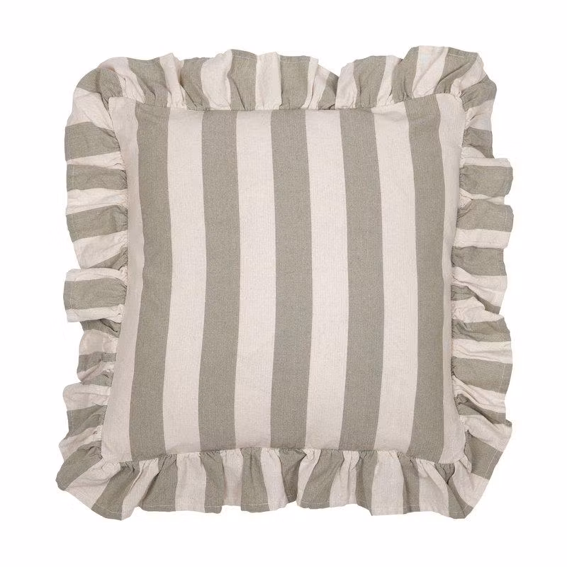 Kuddfodral i fin blockrand med en volangkant runtomkring, tillverkat av en miljövänlig blandning av återvunnnen bomull & poly.