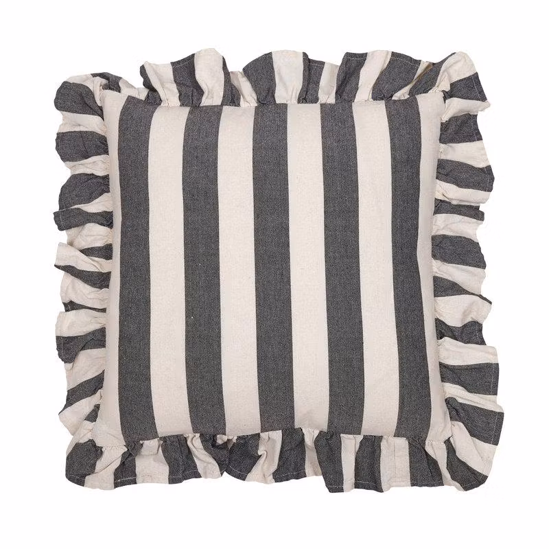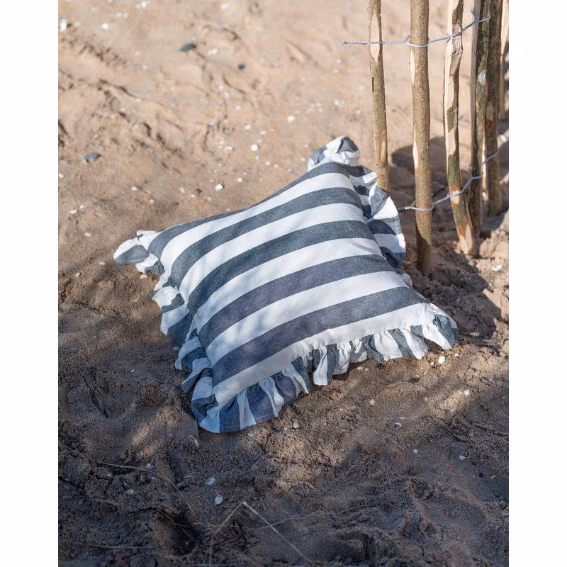 Kuddfodral i fin blockrand med en volangkant runtomkring, tillverkat av en miljövänlig blandning av återvunnnen bomull & poly.